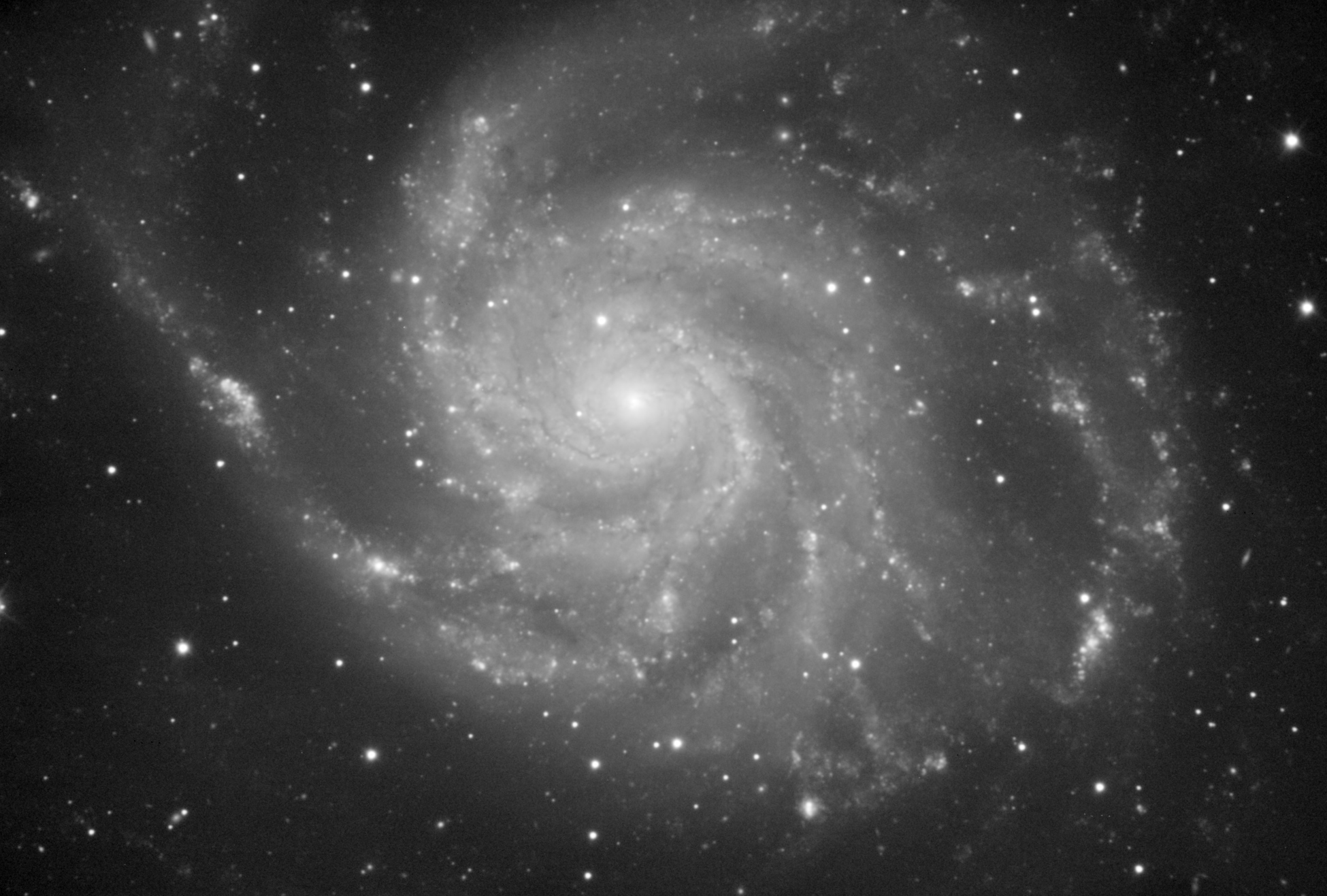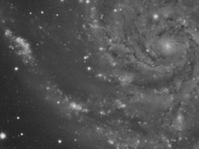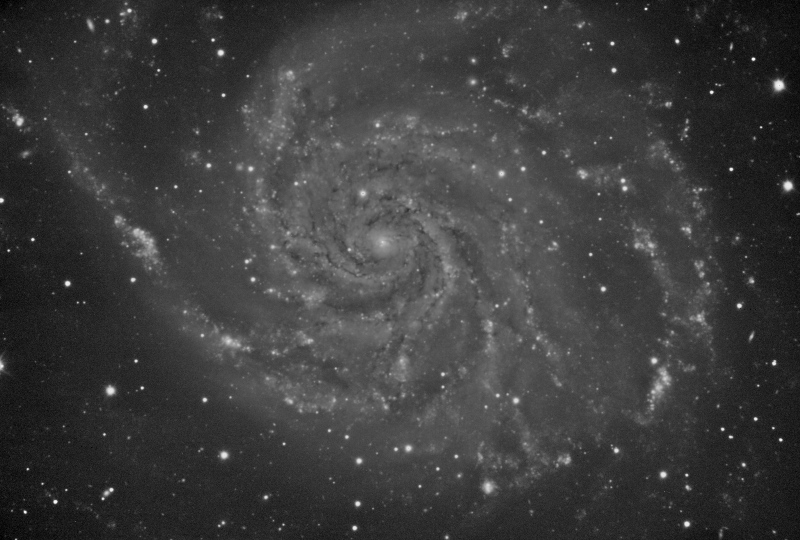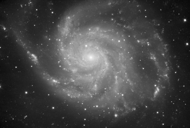In this example we are going to work with the luminance of a M101 image acquired by Jim Misti, who has kindly allowed us to use it here. Raw data for this one and many other images can be downloaded from Jim Misti's website and form an invaluable source of high-quality working material for the development of image processing techniques and algorithms.