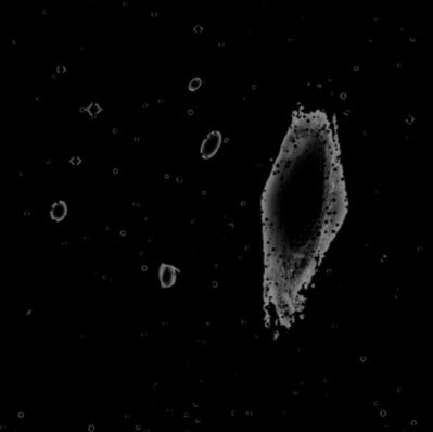 Deconvolution must be filtered through two different masks, since the first one cannot avoid the Gibbs effect, or ringing artifacts. The second mask I have used is a simple star mask generated with the ATrousWaveletTransform tool. This mask must select structures above a given contrast level. It must also protect the areas around these structures, to avoid any sight of ringing artifacts. This star mask is selected in the deringing section of the Deconvolution process, while the first mask must be activated for the image, in the usual way. So deconvolution has been applied through a combination of both masks (Figure 8).