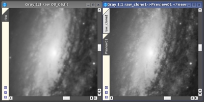 Figure 10— Left: Before applying the High Dynamic Range Wavelet Transform (HDRWT) algorithm. Right: Resulting image after applying the HDRWaveletTransform tool in PixInsight.
