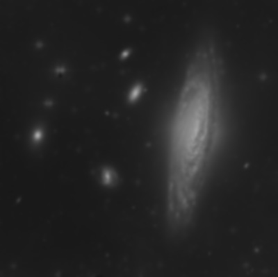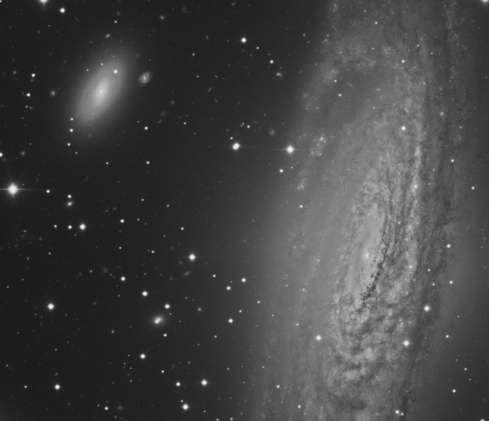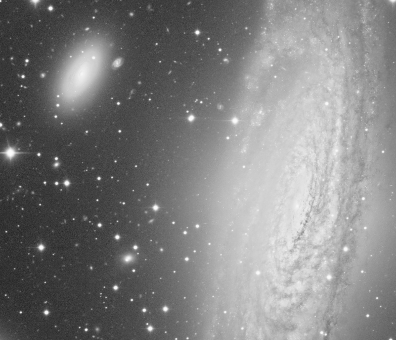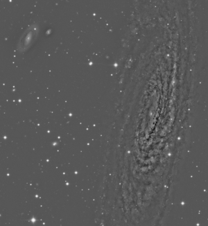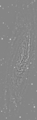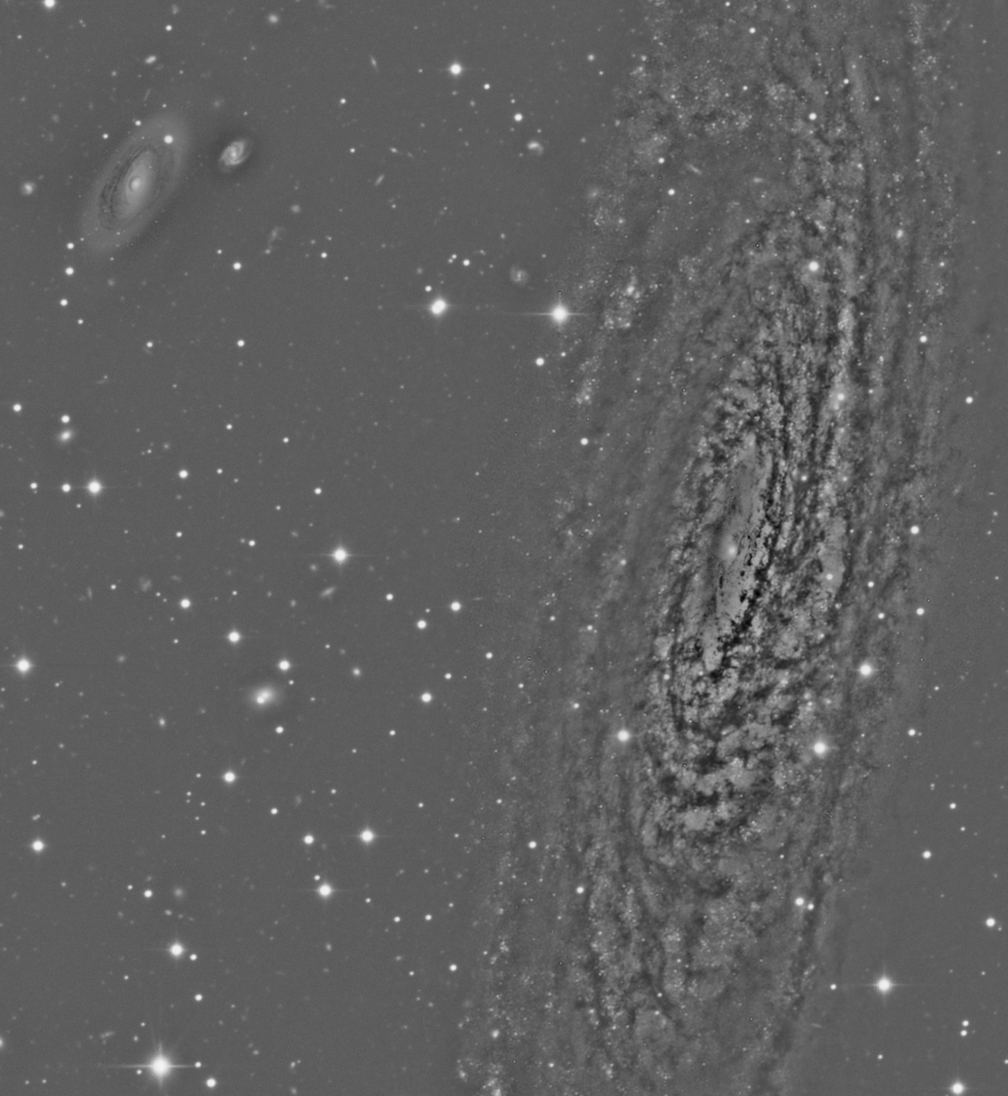 In the case of this NGC 7331 image, this technique worked really well, as you can verify on Figure 15. We have at this stage two images with the isolated small- and large-scale structures, respectively. Now it's time to process them separately. See, for example, how powerful a simple curves transformation can be in Figures 16a and 16b. In a similar way, Figure 17 shows the isolated large-scale image after applying a relatively simple process.