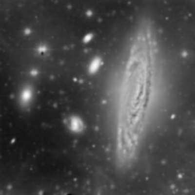 Figure 13 shows the large-scale component of this image. Once we have isolated this component, we can isolate also the small-scale components. This can be done with the ATrousWaveletTransform and PixelMath tools in PixInsight. One of the most important properties of our technique is that it allows us to work independently of the dynamic ranges of the objects in the image.