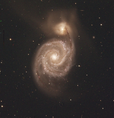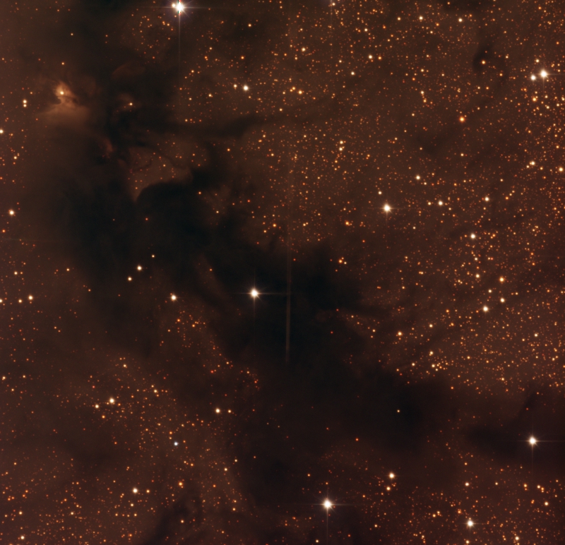 This image has no good white reference because all the stars in the area have a strong warm color. Therefore, a set of short exposures of the nebulae complex and the face-on spiral galaxy were acquired to transfer the white calibration from the spiral galaxy to the master image of the nebula.